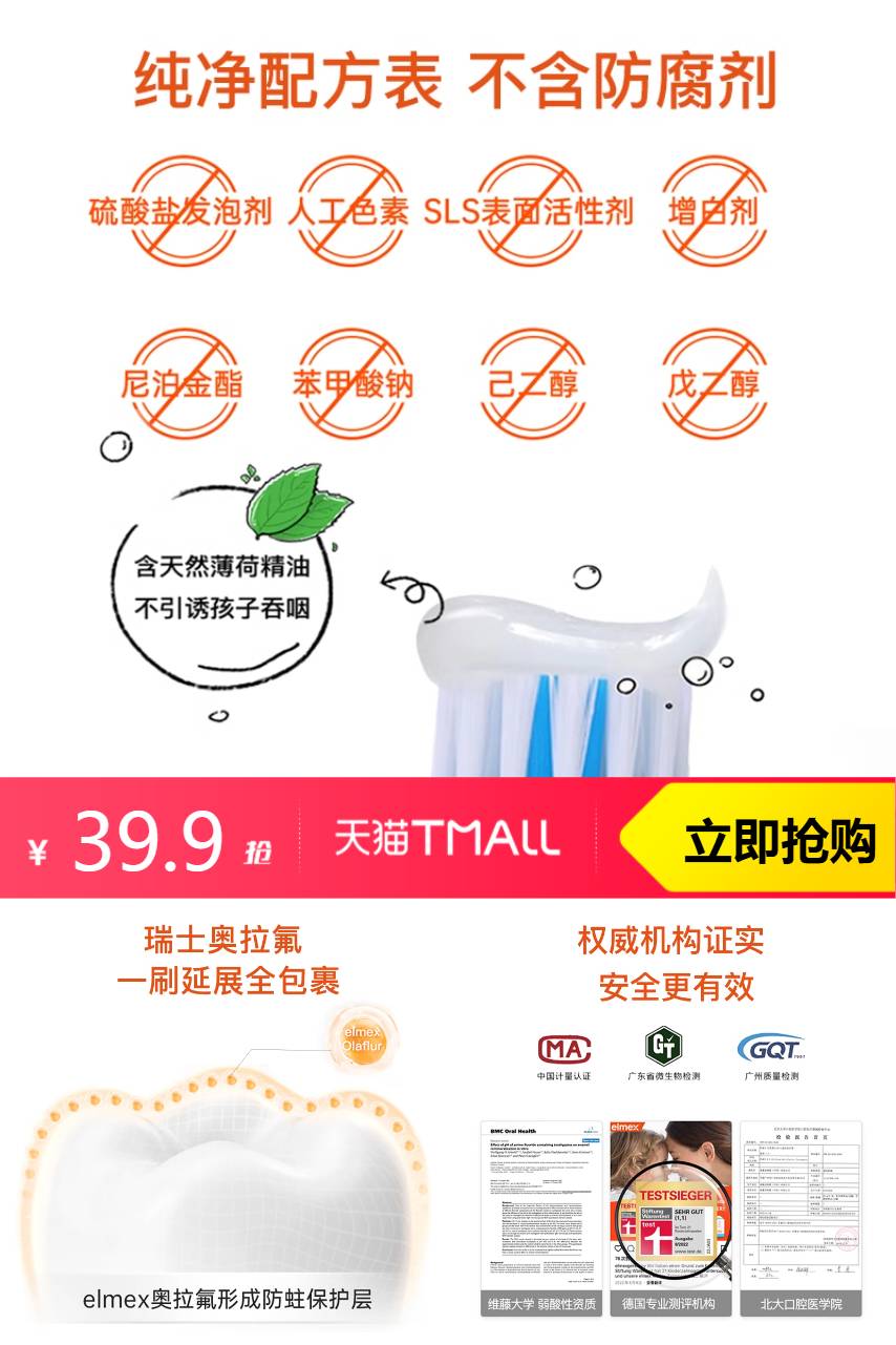 ⭕淘秒专享elmex艾美适儿童牙膏奥拉氟