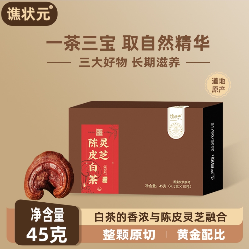 推荐:灵芝陈皮白茶冲泡茶叶代用茶泡水浓香型茶叶盒装官方正品旗舰店