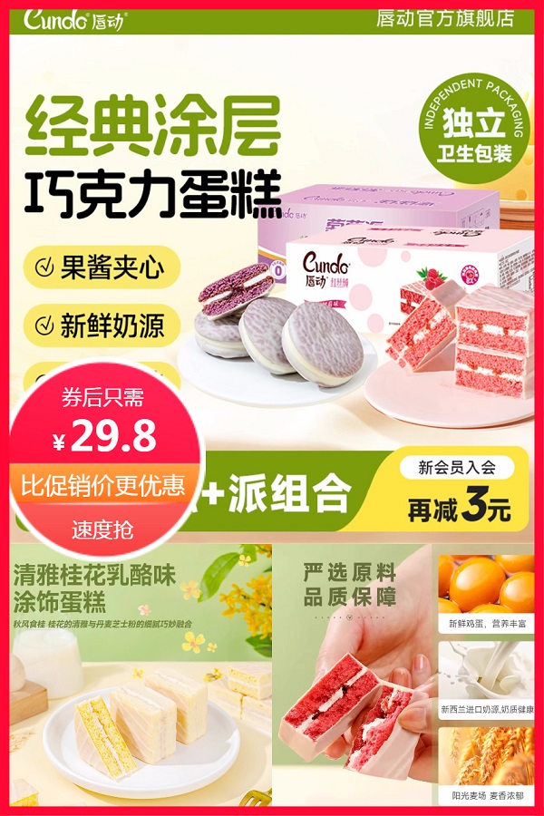【超级立减8+券7+淘金币抵扣1.79到手约28】【唇动】涂层红丝绒夹心蛋糕430g+巧克力派480g!进口奶源,安全放心,营养健康,酸甜草莓果酱,醇香奶油夹心,甜度适宜,一款老少皆宜的小蛋糕!
