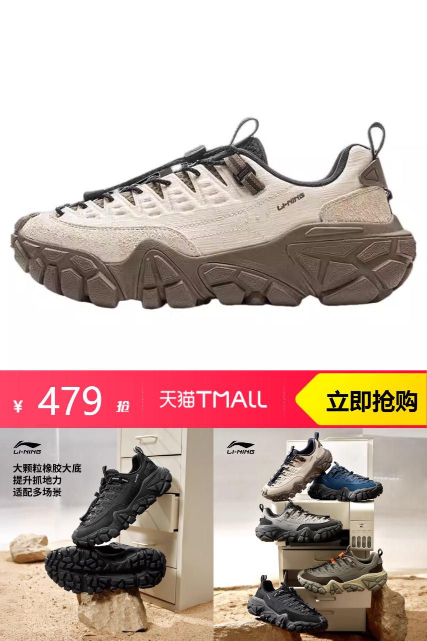 【淘金币14.37,消费券200-25,300-20运动户外券(自动叠加)最终到手279.9;可继续充值店铺购物金到手更低!得物339起】李宁沙丘丨休闲鞋男鞋冬季新款,修饰腿型, 显高显比例~山系设计,尽显户外风尚。防滑耐磨,登山无忧。