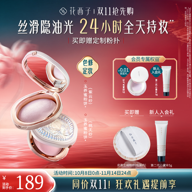 【花西子】花西子限定款定妆粉饼,轻薄透气,控油定妆,适合混合性皮肤使用。无油配方,持久不脱妆,让你时刻保持清新自然的妆容。
