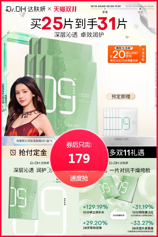 叠精致券200-20!专利海葡萄天丝纤维膜布,婴儿级可触!即刻补水抚红,2周紧致弹嫩!精简配方,敏敏肌放心用!