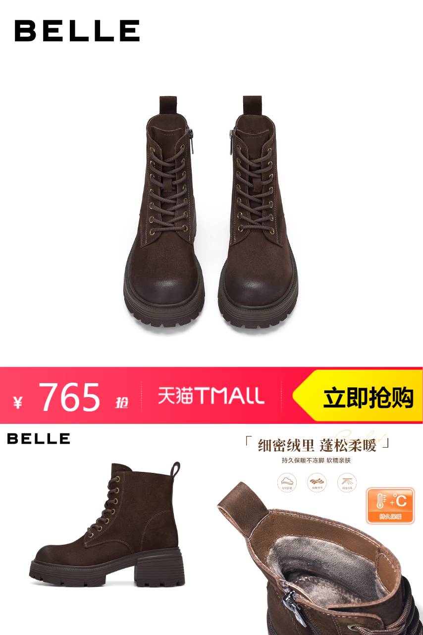 百丽 【双11预售】百丽复古真皮加绒马丁靴 900元减135 商品纠错