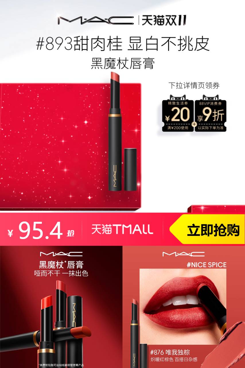 魅可 Mac黑魔杖口红显白显气色 250元减54.6 商品纠错