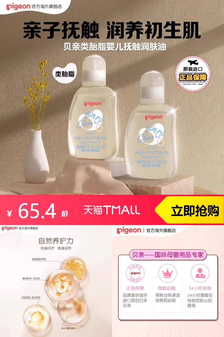 【官方立减15%,立减优惠14.6,参加国际惊喜券300减30到手55,金币拉满5.08到手49.92,叠加9折消费券到手44.9】亲子抚触,润养初生肌,贝亲类胎脂婴儿抚触润肤油~
