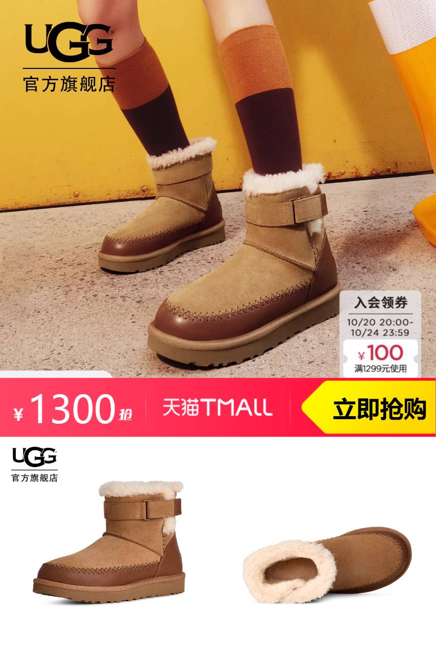 【领会员券1299-100,官方立减267,9折消费券,到手1080】UGG秋季新款保暖平底拼接束带短筒雪地靴,冬日必备~