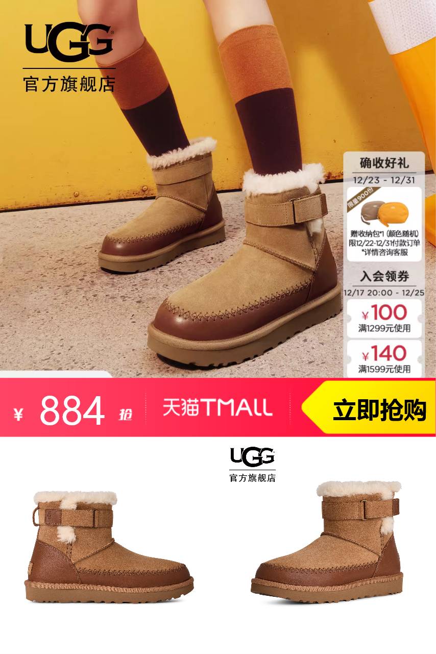 【官方立减195,立减优惠390,服饰降温券1000-80,淘金币45,淘礼金50,凑消费券2000-200,到手633.1】UGG秋季新款保暖平底拼接束带短筒雪地靴,冬日必备~