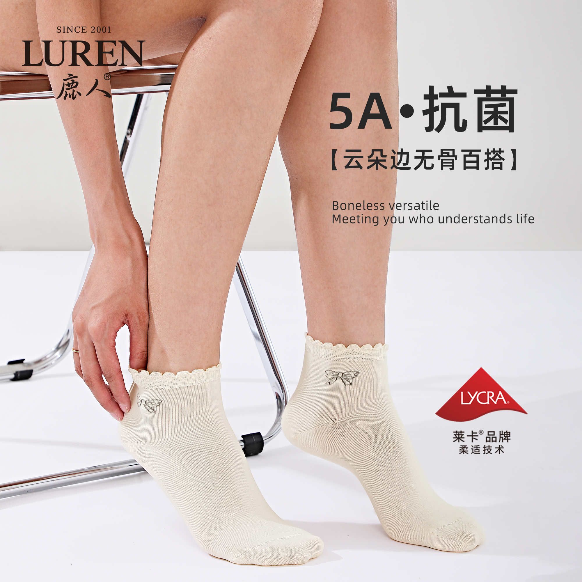 ⭕鹿人无骨短袜云朵边短筒棉袜