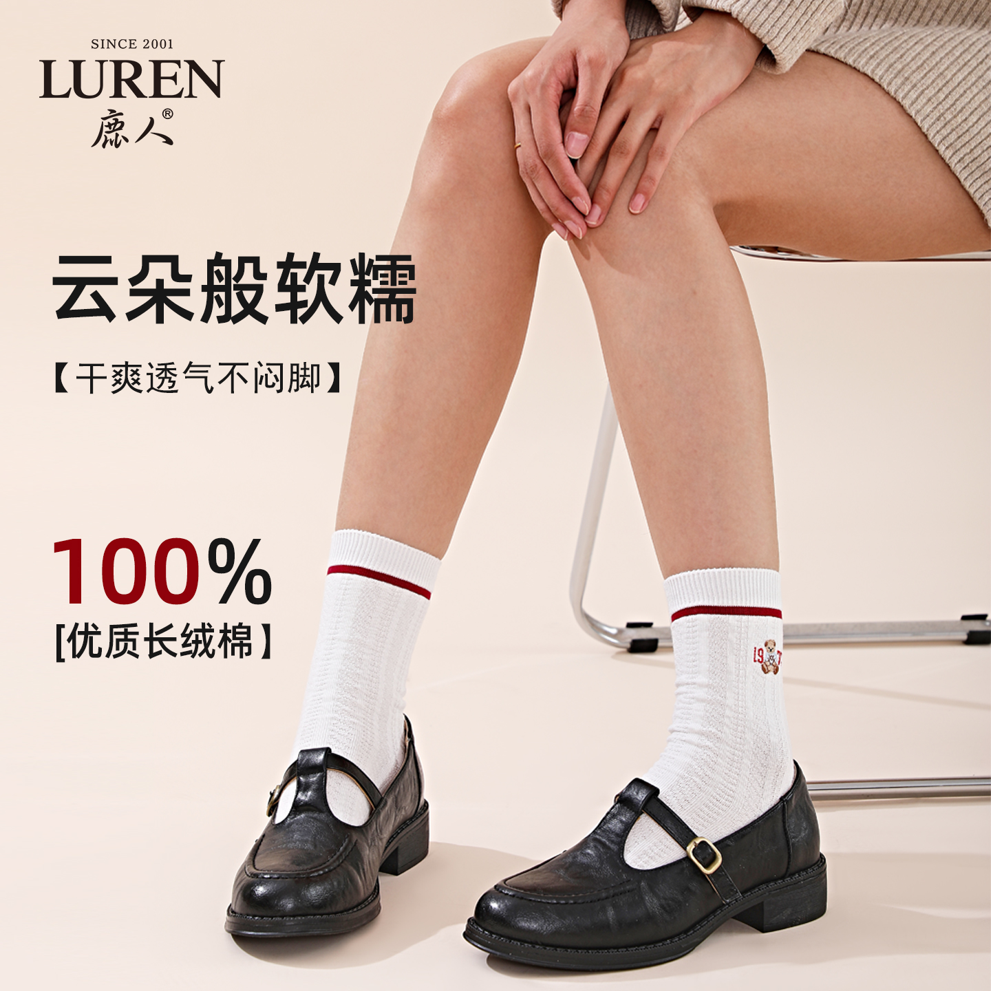 ⭕鹿人袜子女款春秋季百棉高筒袜