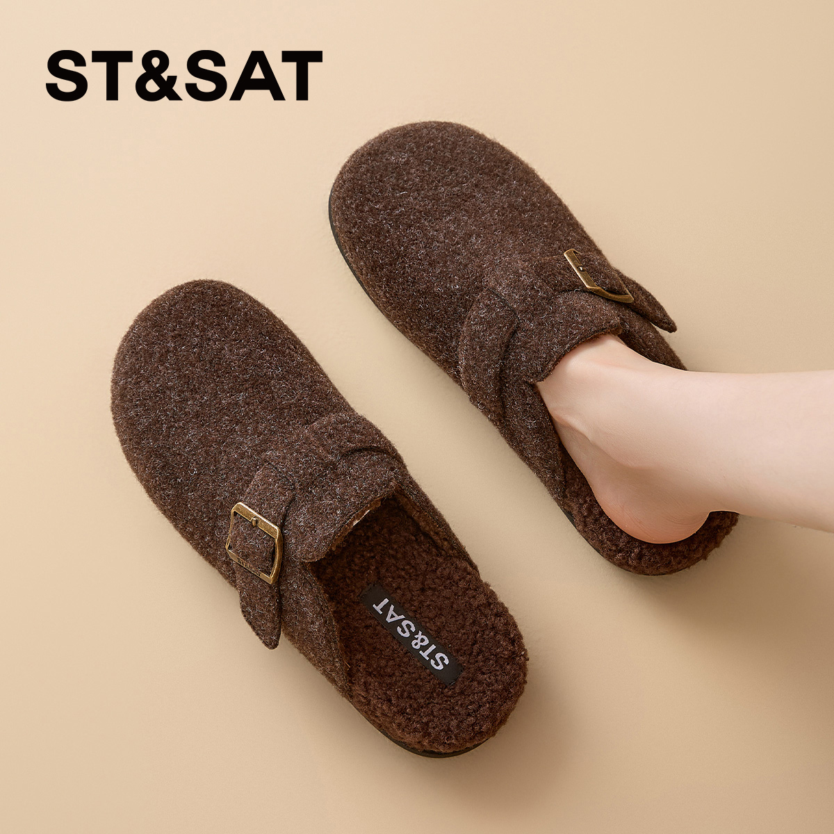 ⭕星期六绒面厚底勃肯半拖鞋女
