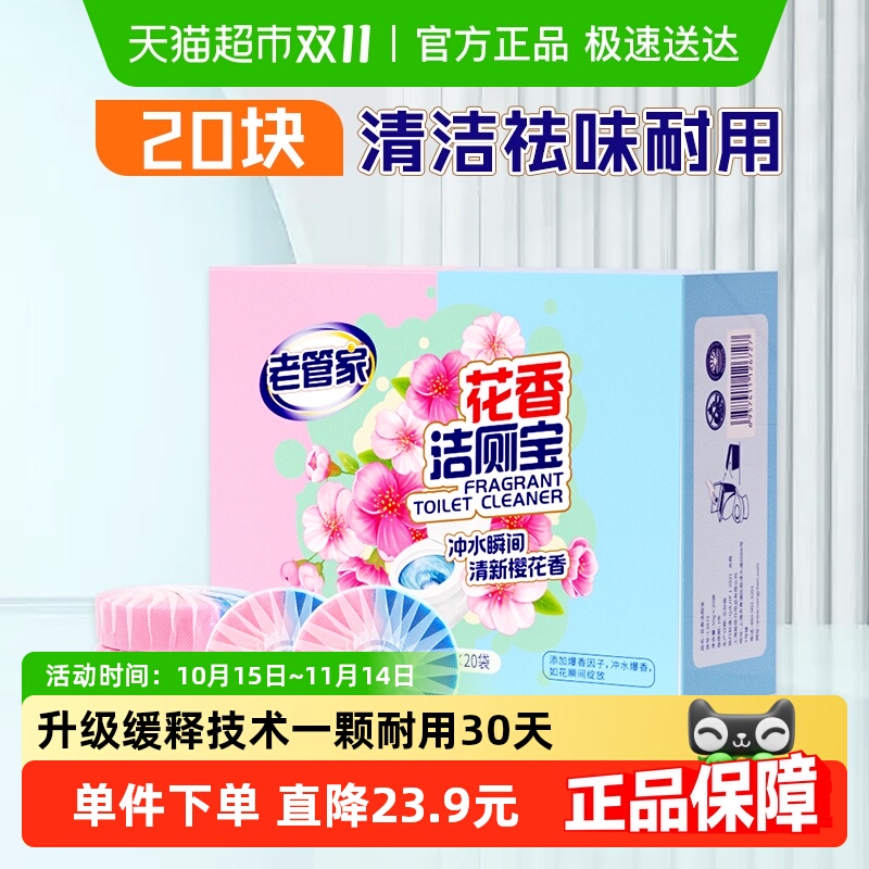 这款老管家洁厕灵块花香洁厕宝50g*20袋,采用天然植物配方,有效去除污渍,保持马桶清洁卫生。花香味浓,持久耐用,适合各种马桶使用。快来试试吧!