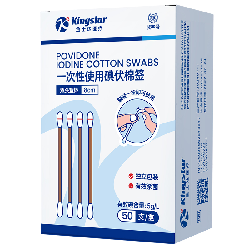 ⭕金士达医疗碘伏棉签50支消毒杀菌