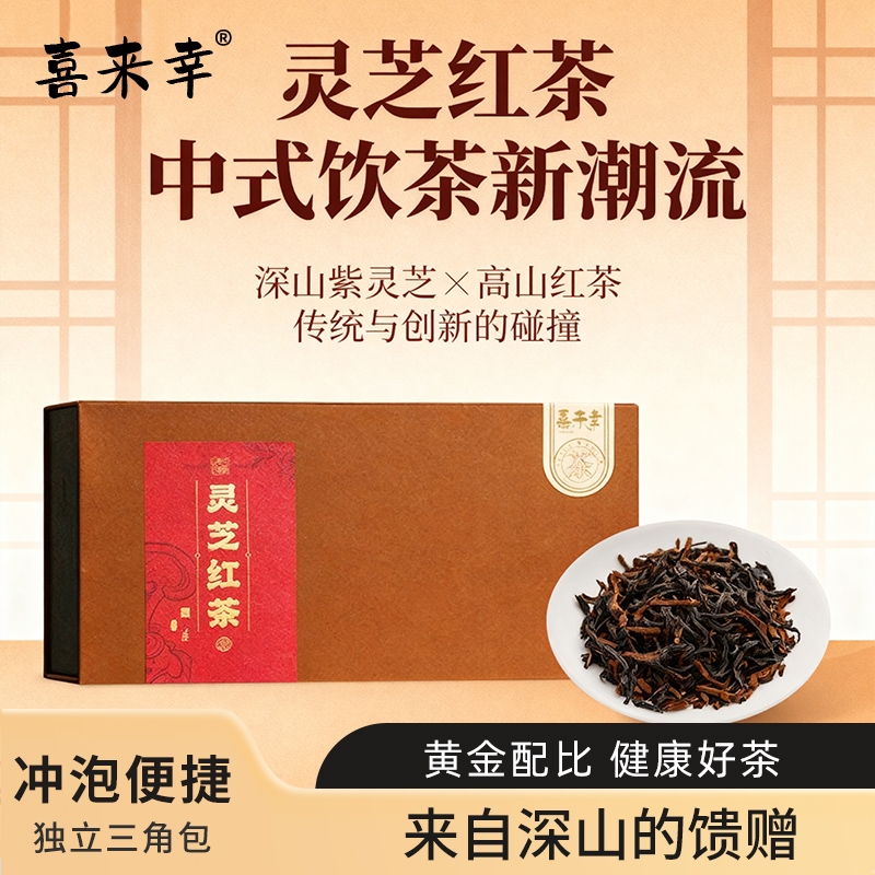 灵芝红茶自己喝养生茶送长辈茶叶盒装养生茶冲泡茶叶浓香型泡水
