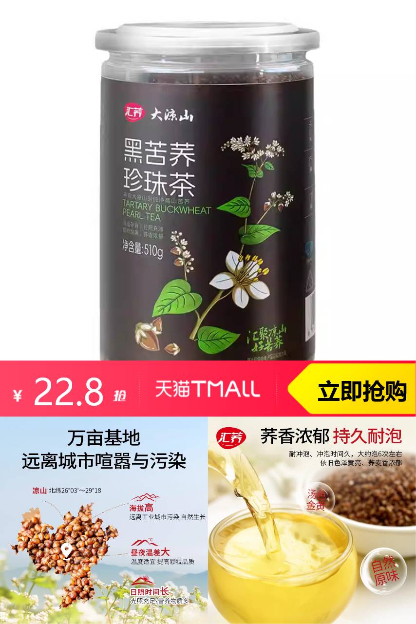 汇荞黑珍珠苦荞茶510g 29元减7 商品纠错