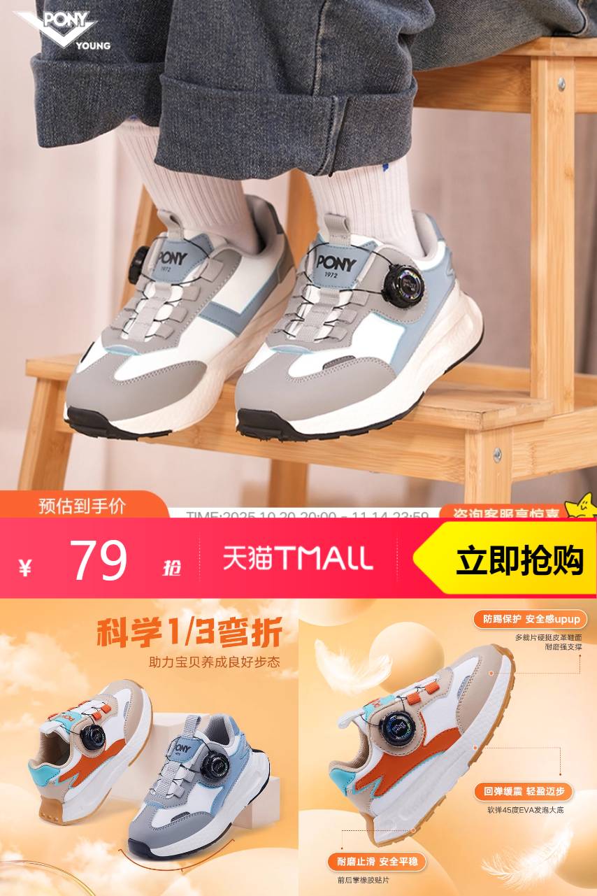 Pony pony儿童旋钮运动鞋男童女童轻便跑步鞋 180元减28 商品纠错