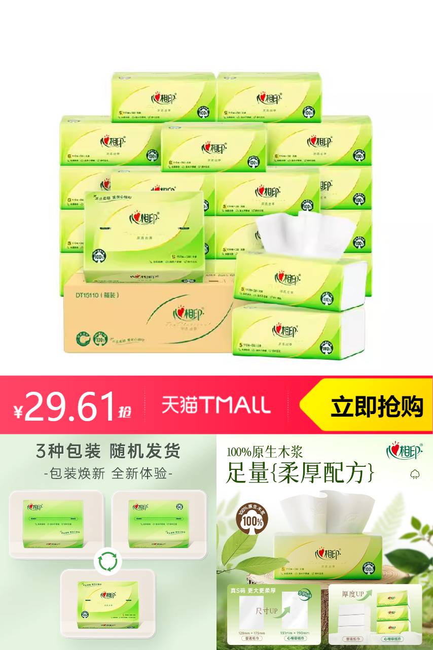 【先去领品牌金3元,再下拉详情页面跳转淘金币抵扣3.09元,到手价26.81元。】商场同款,精选10o%原生木浆,丝柔亲肤,湿水不易破;温和无刺激擦拭不掉屑;无可迁移性荧光物质,母婴也可用~