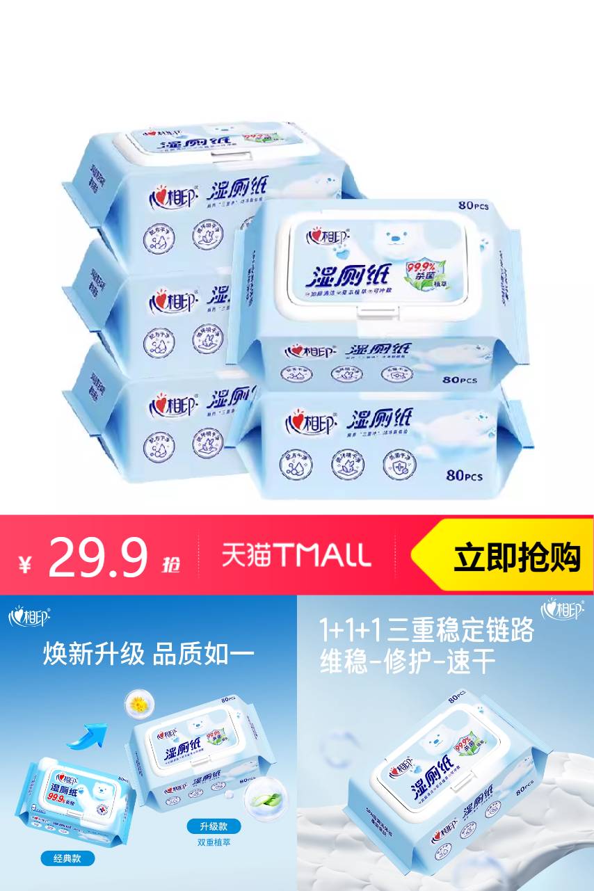 【步骤1:天猫超市-搜心相印-领3元品牌金 步骤2:转淘客链接领1.19元 步骤3:进淘金币抵3.89 步骤4:88vip下单选消费券到手15.66 非vip到手19.49 】心相印湿厕纸家庭装,木浆加厚PH弱酸7秒速,干一冲即散三重洁净。