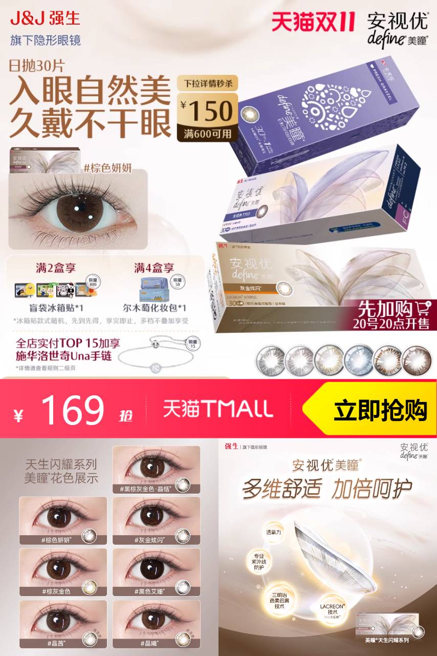 安视优 强生美瞳日抛隐形眼镜define30片 308元减47 商品纠错