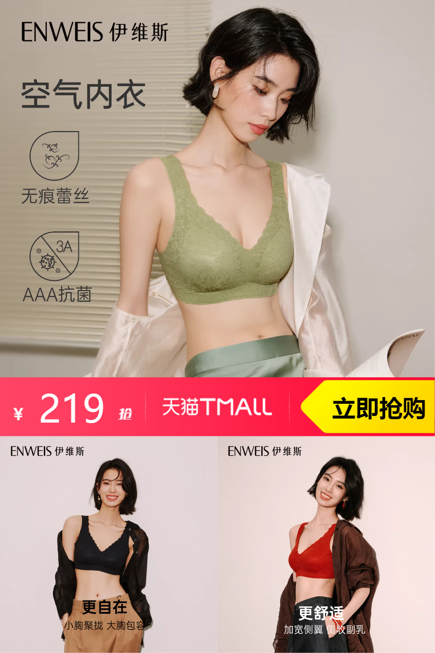 【原价219元-淘金币4.38,可叠200-25消费券抵扣25元=实际到手价189.62元】【空气内衣】伊维斯无钢圈无痕蕾丝文胸,软软的包裹感,舒适的安全感。
