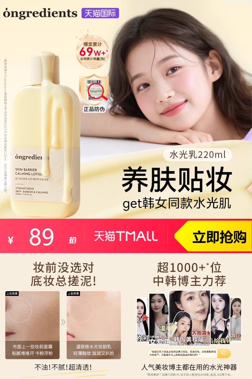 【淘金币减7.12元 到手81.88元!】润肤贴妆,get韩女同款水光肌~