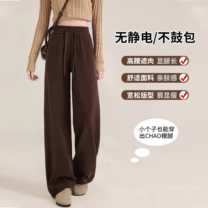 【淘金币2.67,20号晚八点9折消费券,到手56.19】咖色美拉德雪尼尔阔腿裤女2025新款