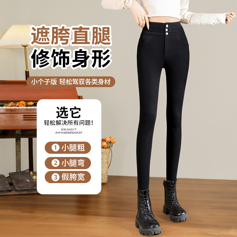 ⭕黑色打底裤女外穿秋季排扣高腰显瘦弹力小脚