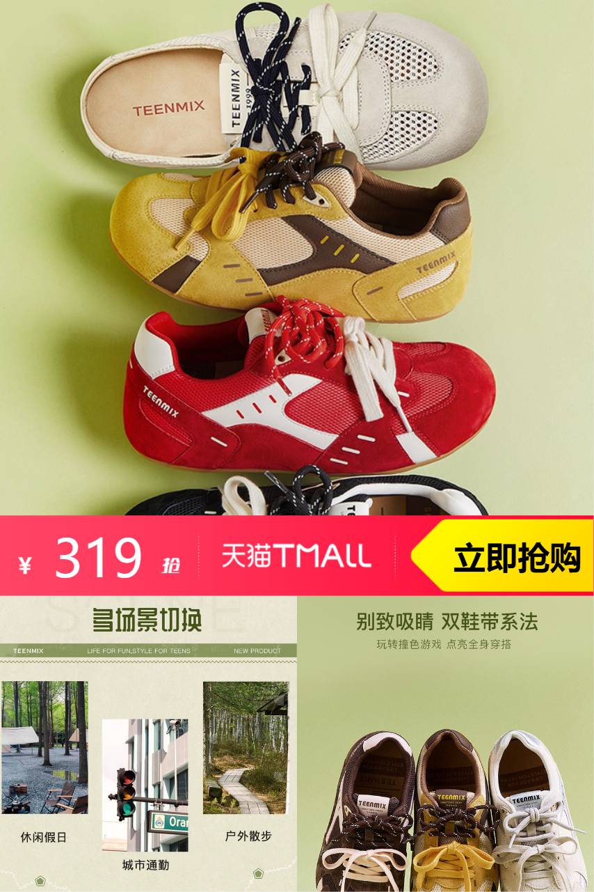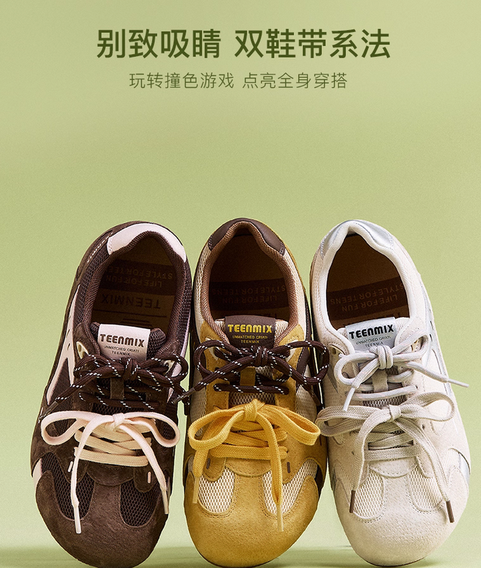 【可叠服饰天降购物券98-12和88vip无门槛9折消费券到手276.3起】天美意芒果鞋黄色复古厚底阿甘德训鞋,别致吸睛 双鞋带系法,玩转撞色游戏 点亮全身穿搭~