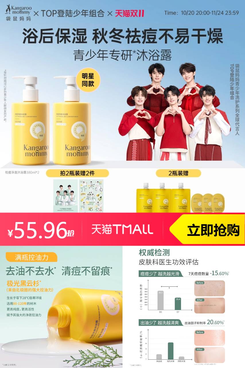 袋鼠妈妈 袋鼠妈妈青少年祛痘沐浴露大黄瓶儿童洗发水 76元减20.04 商品纠错