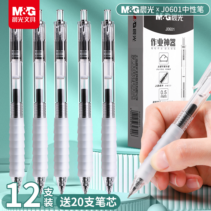 推荐:晨光云握手中性笔按动黑笔速干顺滑签字笔学生专用刷题笔水性笔高颜值ins风红笔蓝笔碳素笔黑色圆珠笔考试