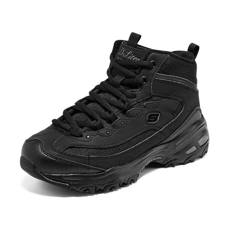 Skechers斯凯奇秋冬女高帮鞋熊猫鞋加绒保暖老爹鞋厚底增高休闲鞋