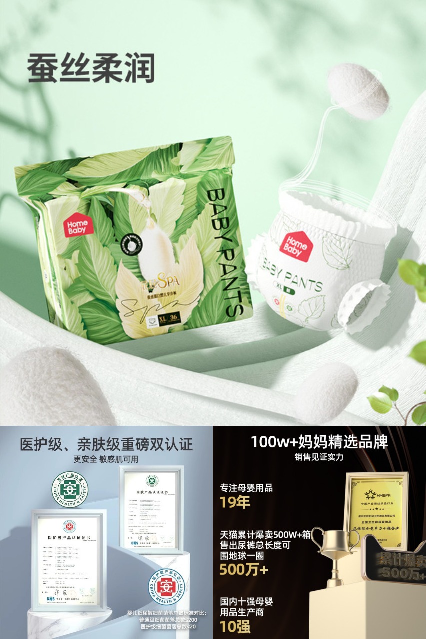【淘金币2元+9折消费券到手40.41,领14元券拍两件79.02元,折单件39.51元】家得宝面膜裤拉拉裤,蚕丝蛋白精华面层,萃取蚕丝蛋白精华,富含氨基酸活性成分,深层滋养肌肤,清爽不粘腻,多种尺码任选!让宝宝更舒适!