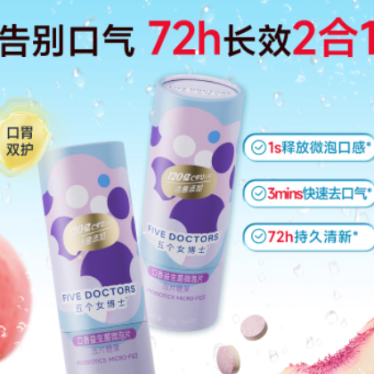 ⭕2瓶五个女博士口香益生菌微泡含片共20粒