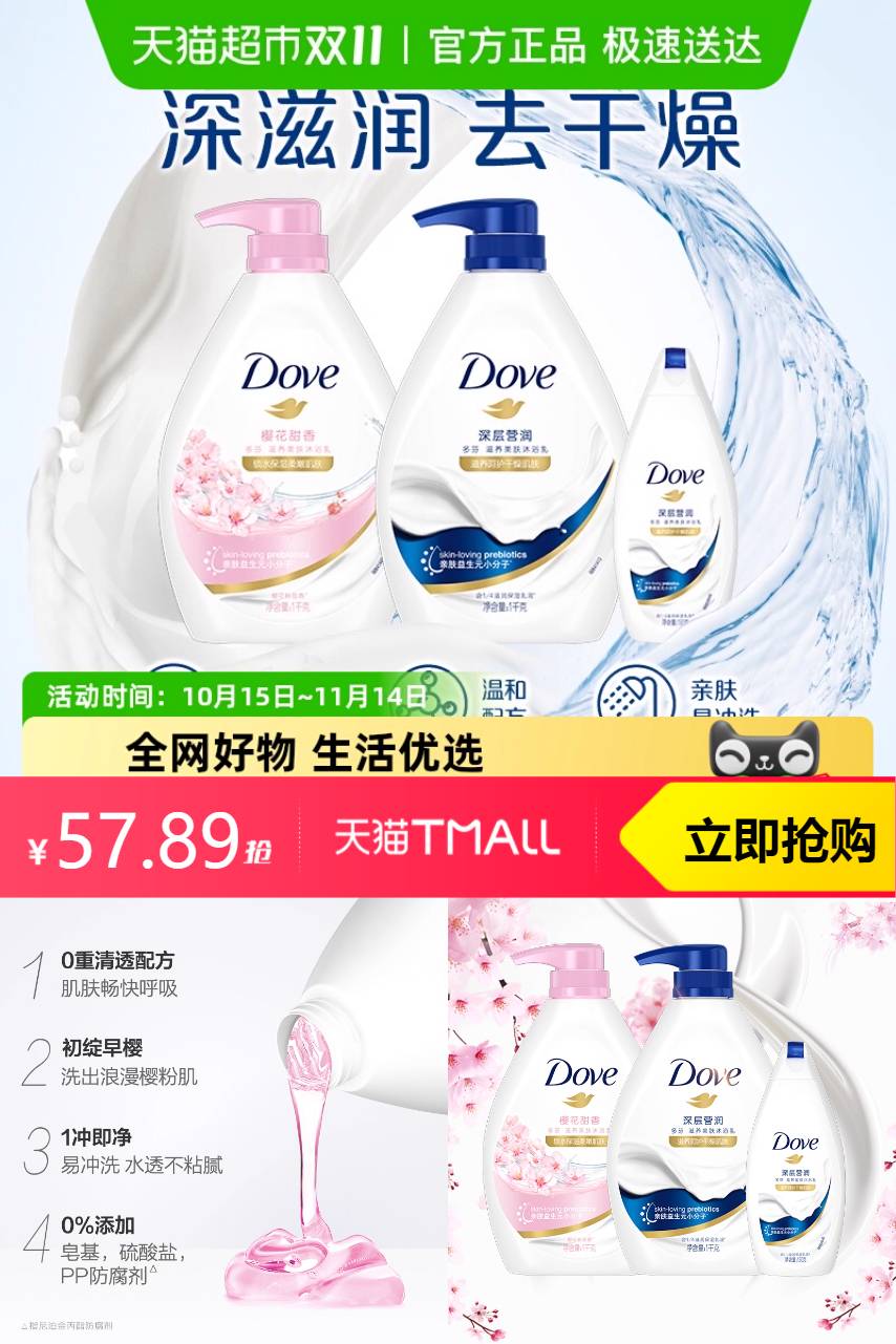 【叠加88立减3.82+淘金币2.69=57.89】深层滋养+樱花甜香,洗完肌肤水润香。