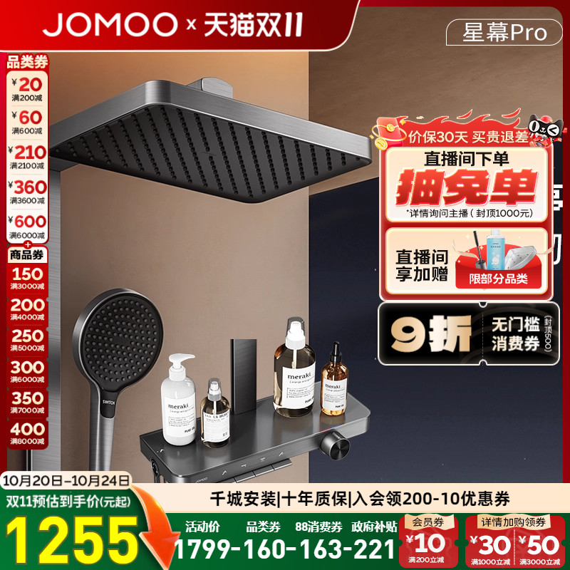 【百亿补贴】九牧星幕版琴键丝雨淋浴花洒套装淋浴器家用增压花洒
