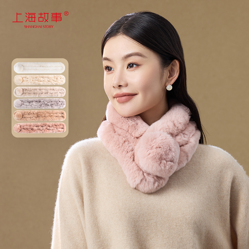 推荐:上海故事秋冬獭兔毛皮草围巾女