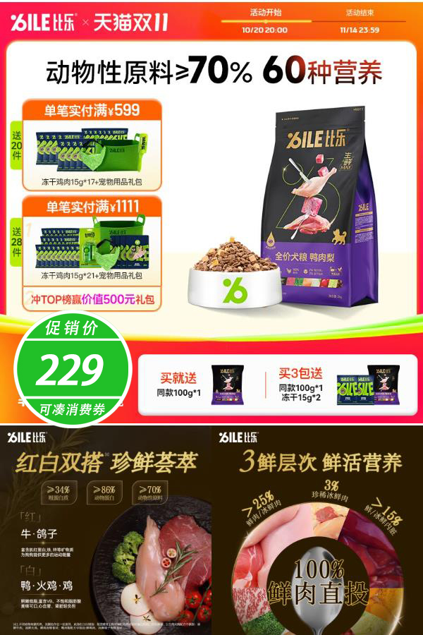 【可叠加消费券+淘金币频道补贴到手价低于202元/20斤】比乐全价犬粮70%动物性原料,肉蔬巧搭配,多样化饮食