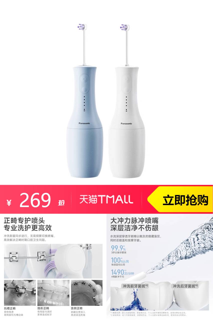 松下 松下小保龄冲牙器超声波水牙线EW1331 411元减142 商品纠错