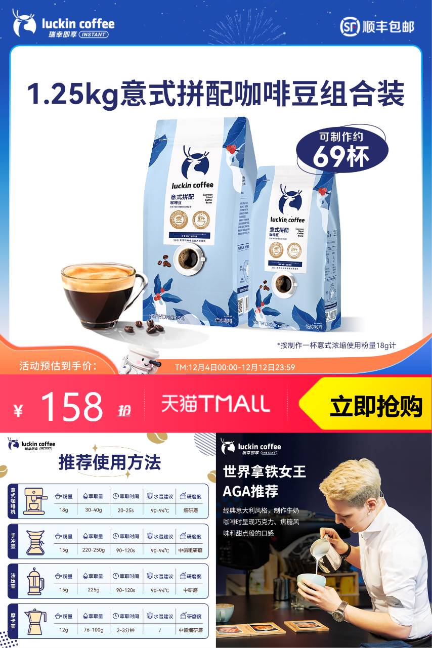 瑞幸咖啡 瑞幸意式拼配云南巴西深烘咖啡豆黑咖啡 297元减139 商品纠错