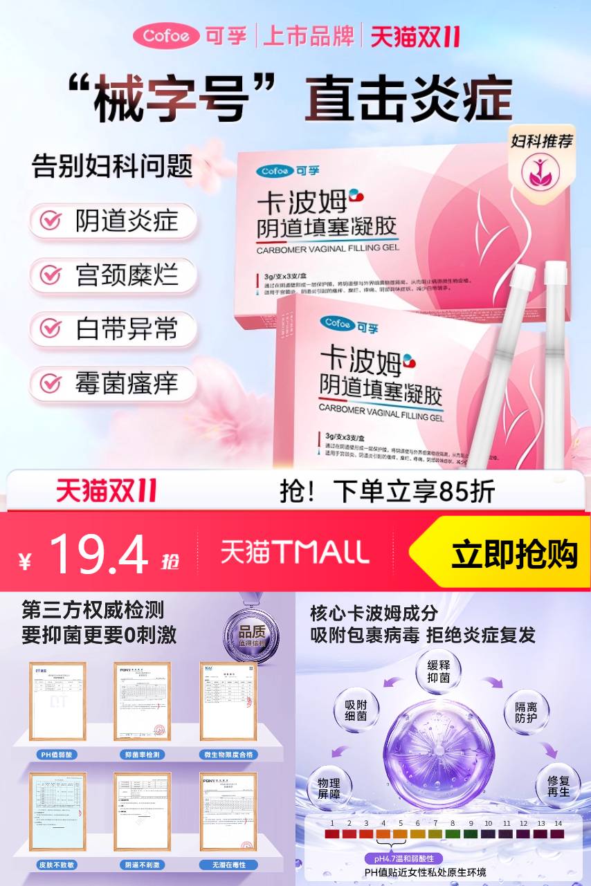 ⭕可孚妇科凝胶抑菌卡波姆阴道炎宫颈糜烂炎症
