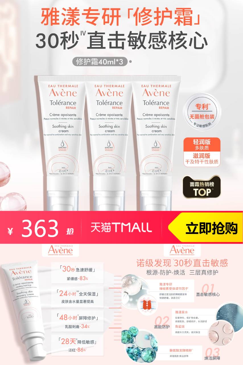 ⭕雅漾敏肌褪红舒缓专研修护霜40ml*3瓶