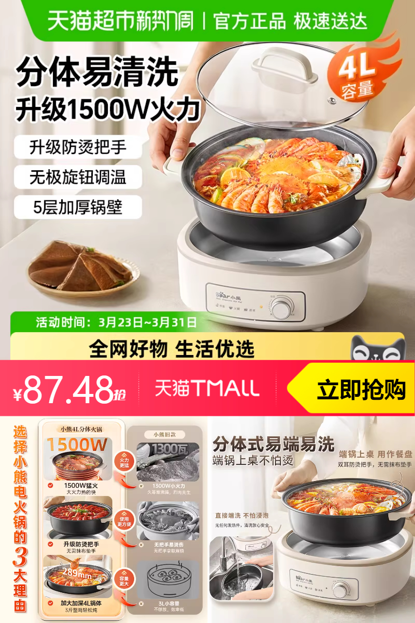 推荐:小熊电火锅家用分体式可拆洗小型
