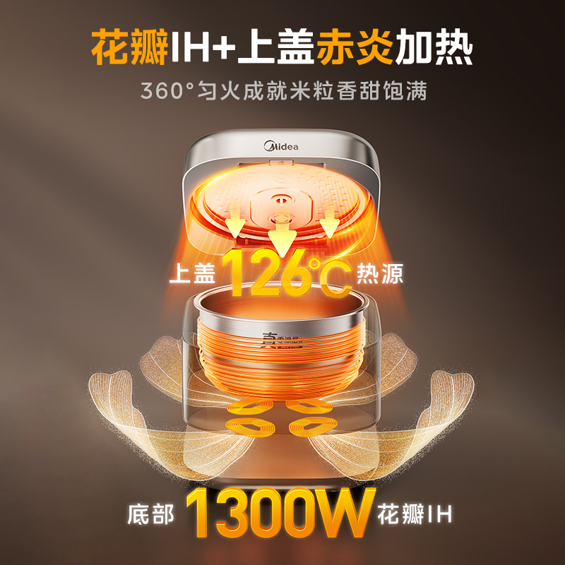 【领取国补到手594.15,叠加88vip减34.95+消费券+淘金币减21.98到手491.18】美的花瓣IH电饭煲316L不锈钢0涂层,0涂层更健康~