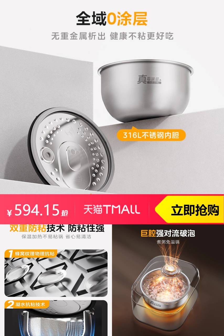 ⭕美的花瓣IH电饭煲316L不锈钢0涂层