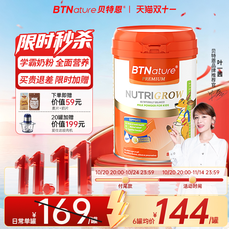【淘金币抵扣18.15,官方立减55,国际惊喜品类劵30,限时红包6】【2罐】BTN贝特恩儿童成长奶粉儿童高钙,超赞~
