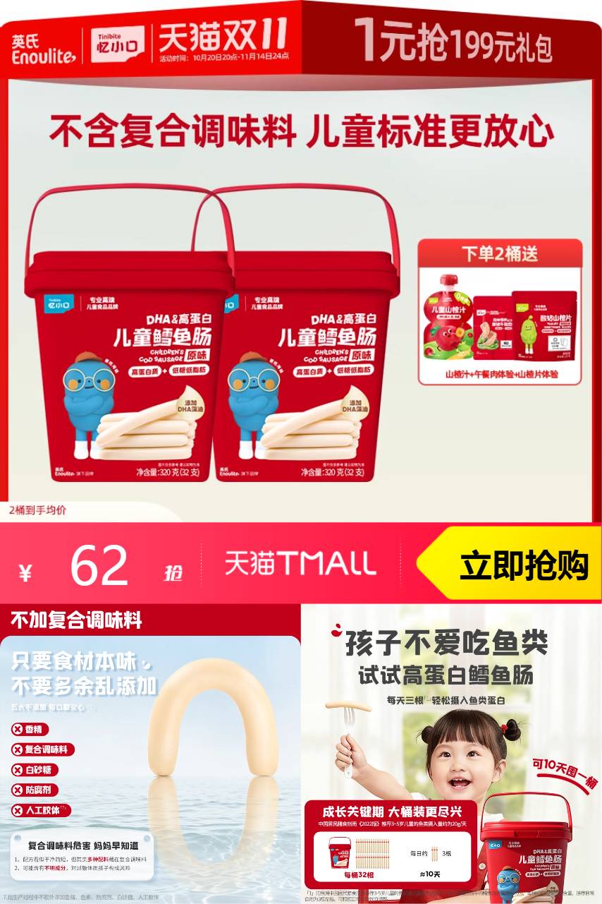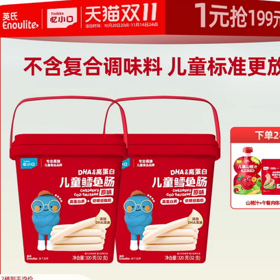 【立减21+叠加消费券到手55.8元】英氏高蛋白鳕鱼肠量贩装儿童零食营养鳕鱼桶,不加复合调味料配方看得见,拒绝用复合调味料当幌子,严格控制重金属~