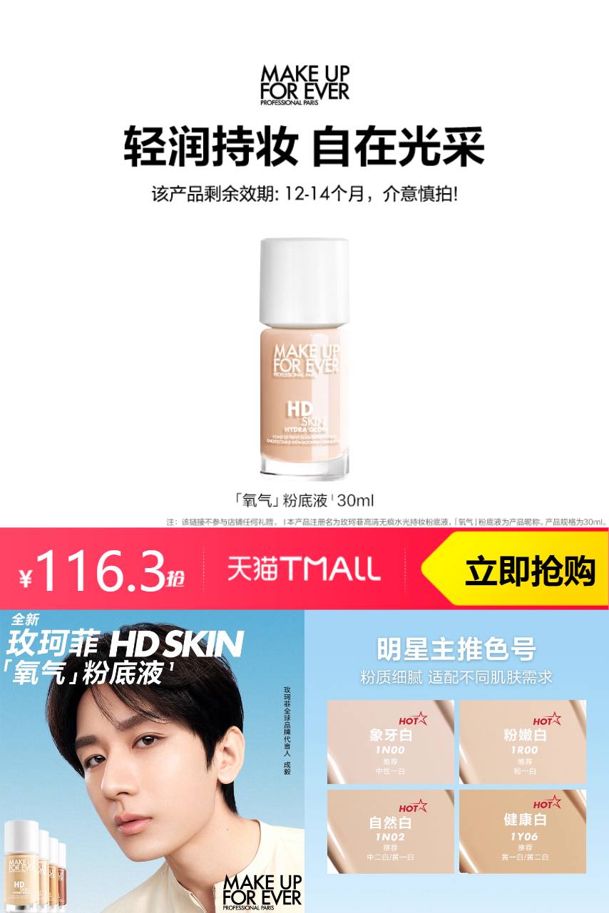【3折清仓款,效期12-14个月,叠加金币+消费劵到手116.7】makeupforever玫珂菲全新氧气粉底液,清透持妆不暗沉,0粉感透现原生微光,24小时清透光采~