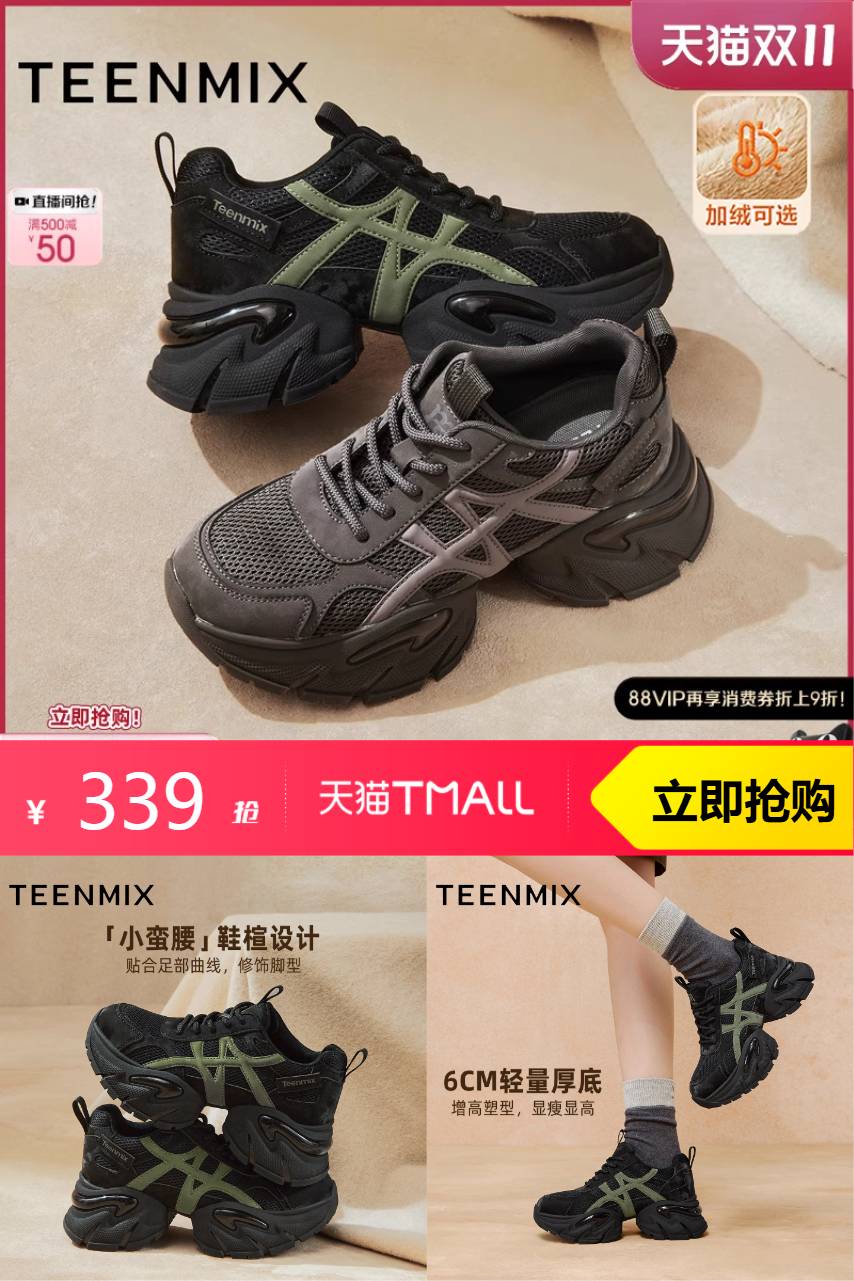 【88vip95折减16.95,叠无门槛9折消费券后到手289.85起】天美意厚底增高复古老爹鞋运动鞋,多种内里选择 应对温度变化~