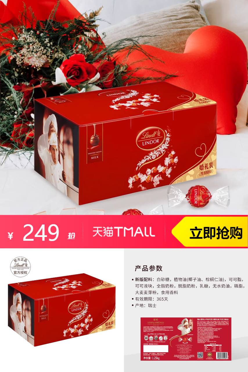 推荐:瑞士莲软心牛奶巧克力婚礼喜糖1.25kg