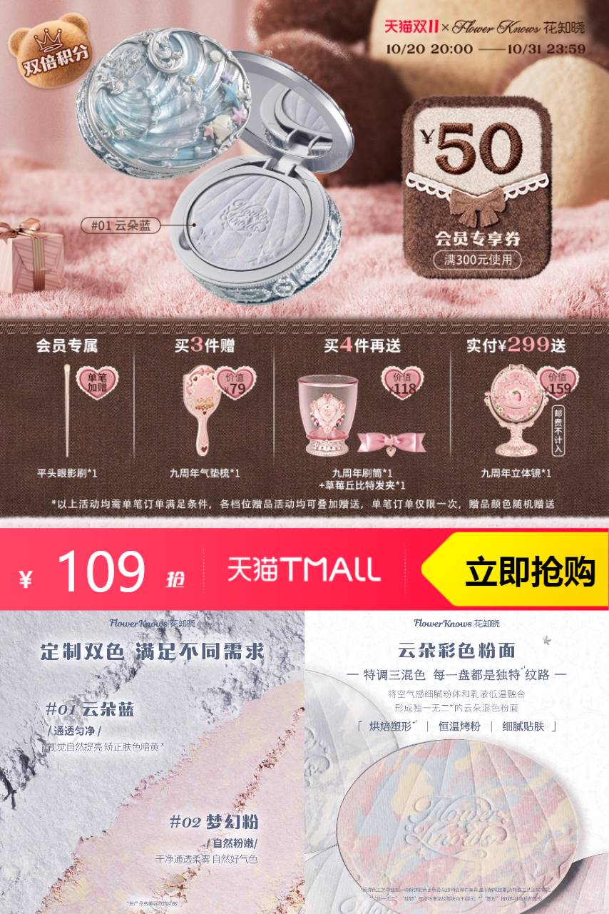 推荐:【双11狂欢】花知晓贝壳珍珠混色蜜粉饼