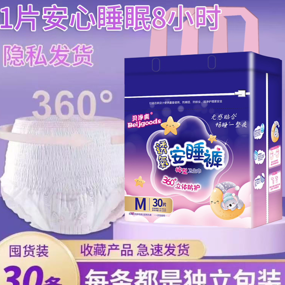 【19.9元30条夜用安睡裤,划6毛多一条M、L、XL尺码任选】康日馨安睡裤大码安心裤姨妈期卫生巾30条,用亲肤透气的材质,让你感受整夜干爽,独特的吸收层设计,迅速吸收湿气,告别潮湿不适,M码适合大多数成人使用,轻松穿脱,无束缚感。